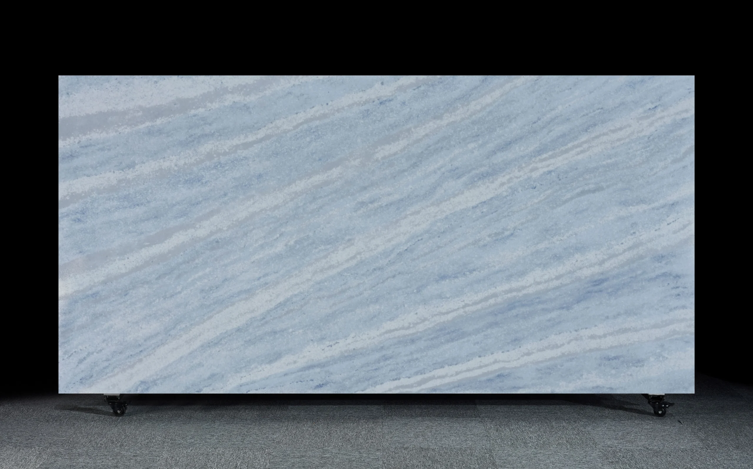 Wholesale light blue quartz slab with flowing white and grey veins—durable, stylish, and perfect for countertops, vanities, and wall applications.