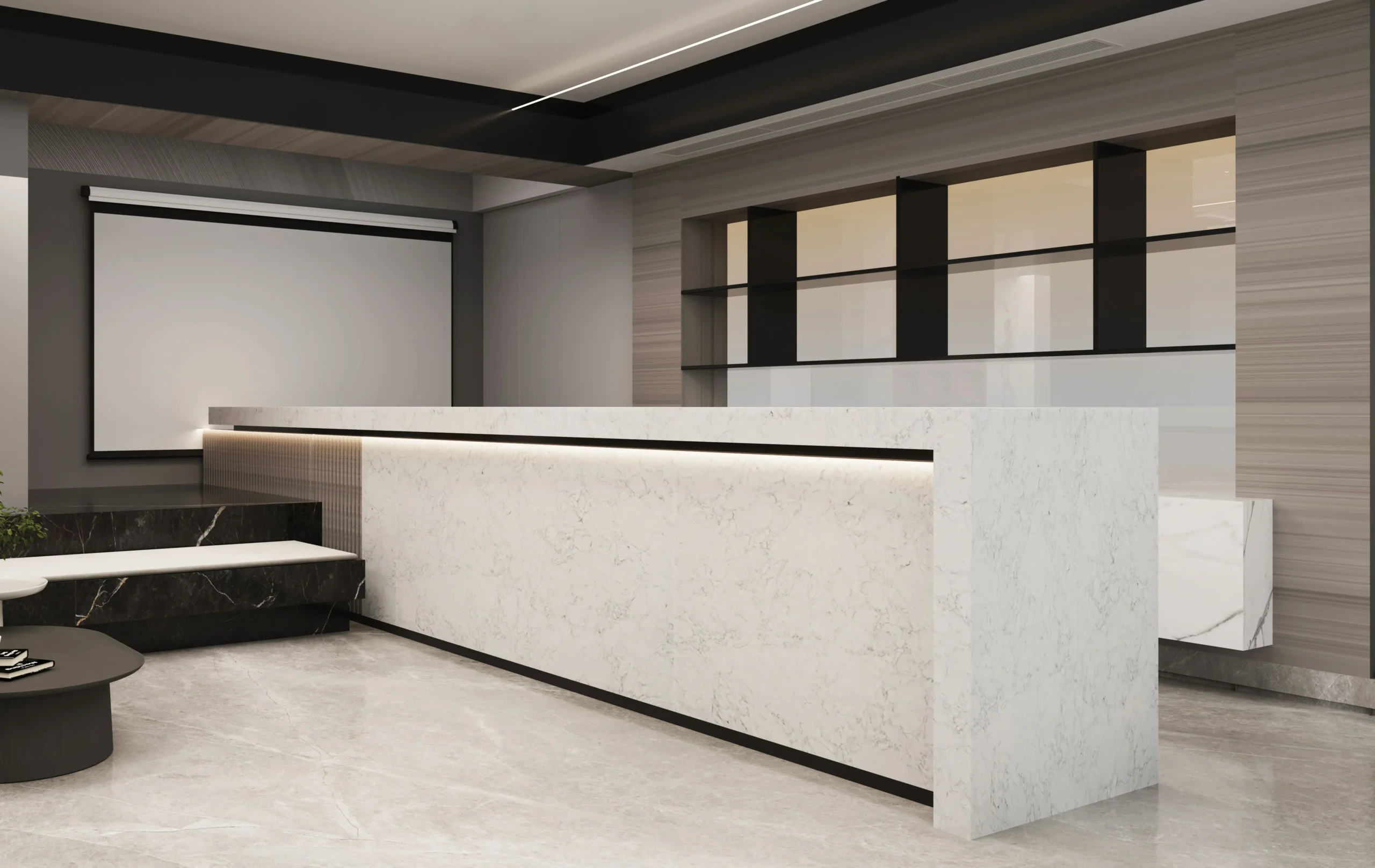 Wholesale light grey marble-look quartz slab—durable, stain-resistant, and perfect for bulk countertops, vanities, and commercial interior projects.